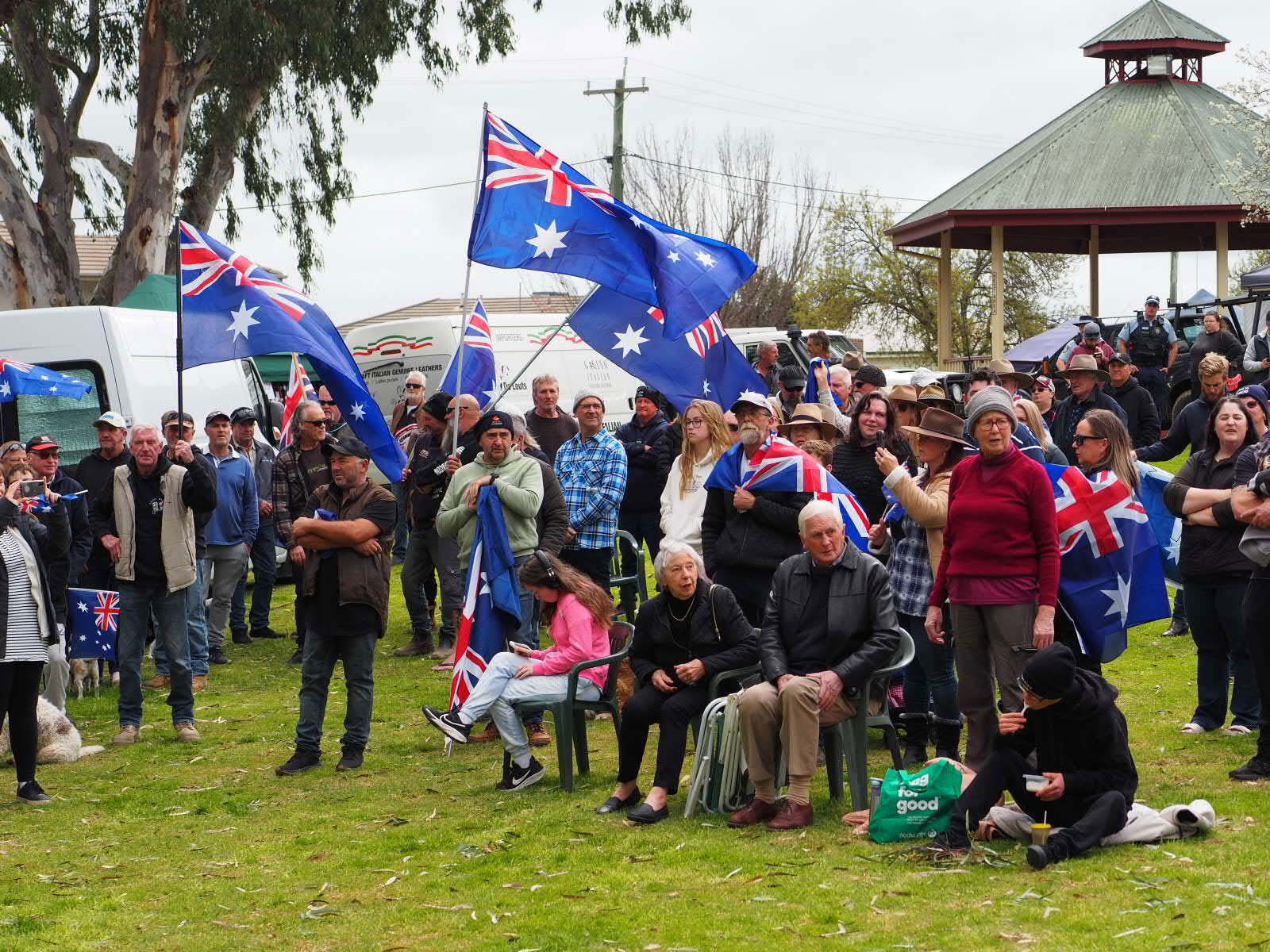 About 400 people attended the Kerrabee Sound Shell in Echuca, in northern Victoria, with some travelling from as far away as Ballarat to take part in the "March for Australia".