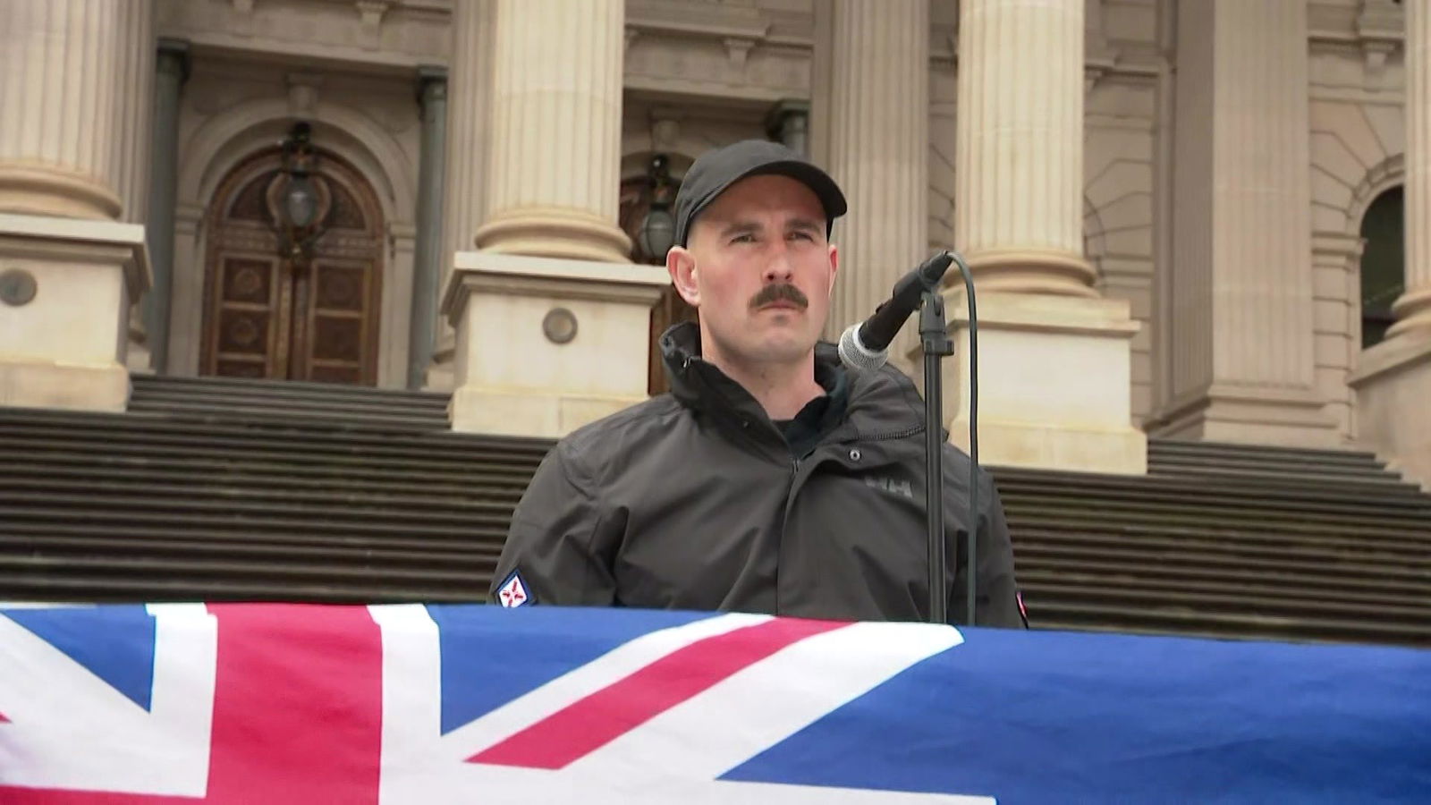 Neo-Nazi Thomas Sewell speaks at Melbourne rally