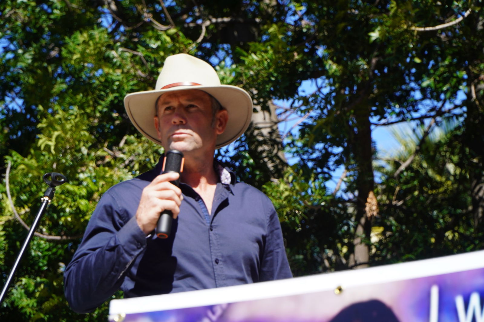 One Nation MP Rod Caddies addressed the crowd and said it was about supporting the Australian flag.