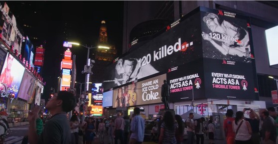 뉴욕 타임스스퀘어 옥외 전광판에 상영된 '군함도의 진실' 홍보영상 (사진 : 중앙일보)