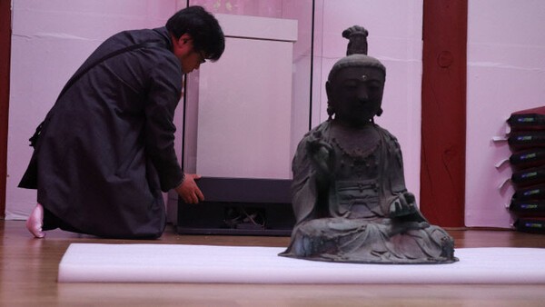 100일 간의 친견법회를 마치고 일본 이송을 준비 중인 부석사 금동관세음보살좌상 (사진 : 중도일보)