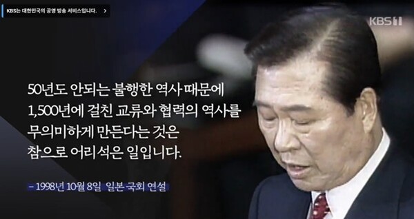 1998년 10월 8일, 김대중 전 대통령의 일본 국회 연설 모습 (사진 : KBS 뉴스 캡쳐)