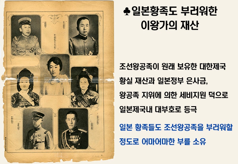 왜 우리는 이런 사실을 지금껏 전혀 몰랐을까요? 이 엄청난 재산은 나중에 이승만 대통령이 대한민국을 건국한 후, 이들 왕족의 재산을 모두 국가 재산으로 압류하고 귀속시켰습니다.
