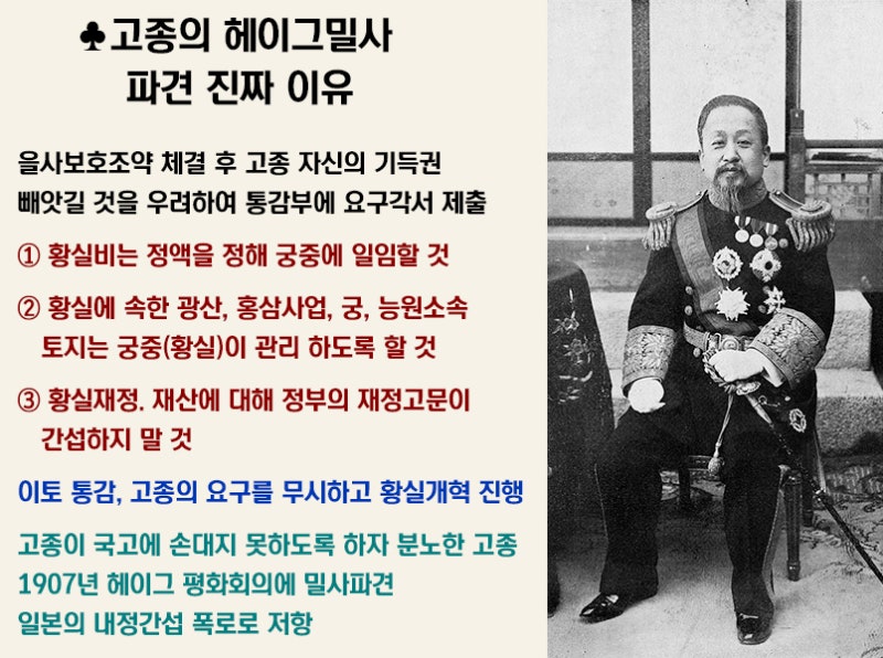 을사보호조약(乙巳保護條約) 체결 이전, 고종은 통감부에 밀사를 보내 다음과 같은 세 가지 요구사항을 전달했습니다: