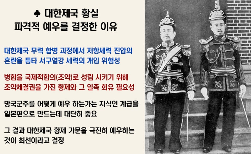 파격적 예우 결정: 이러한 이유들로 인해 일본은 대한제국 황제의 눈알이 튀어 나오도록 파격적으로 예우하기로 결정했습니다.