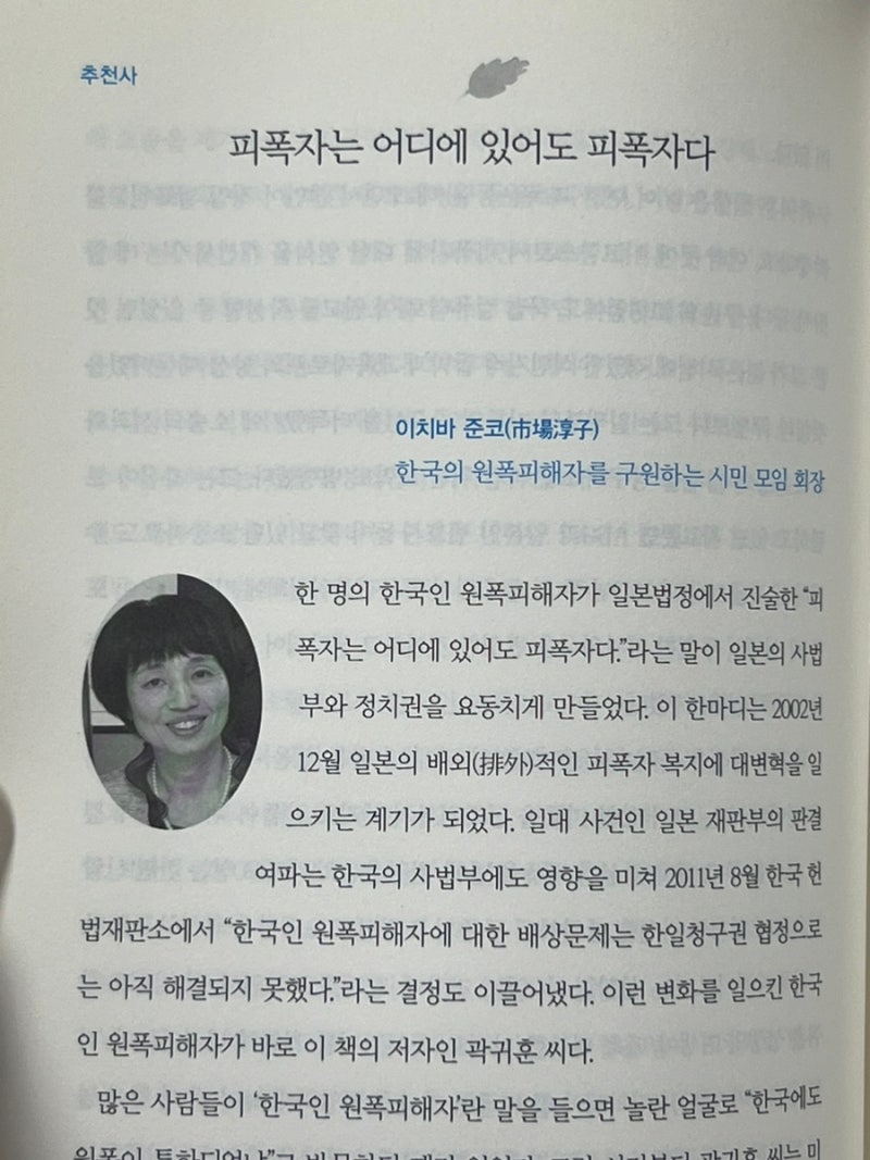 ‘한국의 원폭피해자를 구원하는 시민의 모임 회장’ 이치바 준코께서 2000년대 초반 출판하신 ‘한국의 히로시마‘라는 책을 소개해드리고자 합니다.