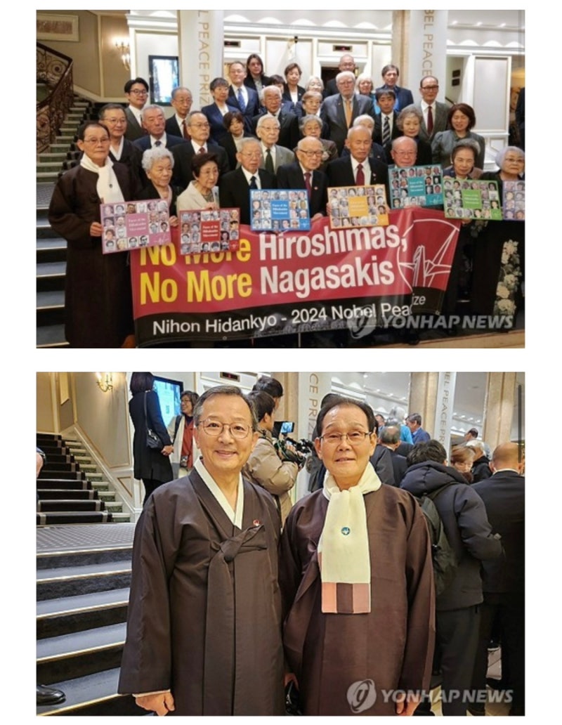 시상식, 12월 10일(현지시간) 노르웨이 오슬로서 개최 비용 '일본의 한국원폭피해자를 돕는 시민모임'서 부담 2024년 노벨 평화상을 수상한 일본 원폭피해자 단체인 '니혼 히단쿄(일본 원수폭피해자단체협의회)'가 한
