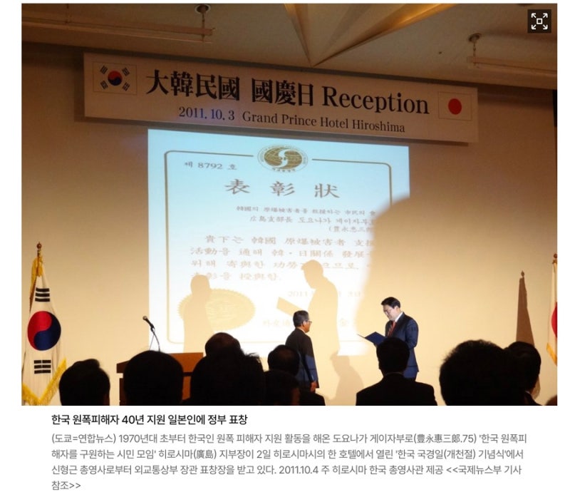2024년 노벨 평화상을 수상한 일본 원폭피해자 단체인 '니혼 히단쿄(일본 원수폭피해자단체협의회)'가 한국 원폭 피해자들을 노벨상 시상식에 초청했다.