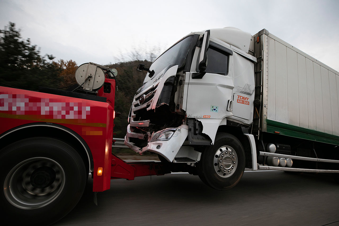 11월7일 중부고속도로에서 한 대형 화물차 사고 차량이 견인되고 있다. ⓒ시사IN 이명익지난 11월1일 경남 하동군 국도 직전터널 출구에서 승용차와 25t 화물차가 정면충돌해 승용차 운전자가 숨지고 화물차 운전자가 다쳤다. 같은 날 남해고속도로 칠원분기점에서 화물차 3중 추돌사고가 발생해 1t 트럭 운전자가 죽고 25t 트럭 운전자가 다쳤다. 11월7일에는 중부내륙고속도로 상행선 괴산나들목 인근에서 화물차 3대와 승용차 1대가 연쇄 추돌해 25t 화물차 운전자가 숨지고 다른 차량 운전자 3명이 다쳤다. 같은 날 충북 옥천군 군북면 국도에서 25t 화물차가 도로 옆 경사지로 추락해 운전자가 사망했다. 같은 날 익산-장수고속도로 익산분기점에서 대형 트레일러 트럭이 급커브 길에서 넘어져 운전자가 사망했다.
