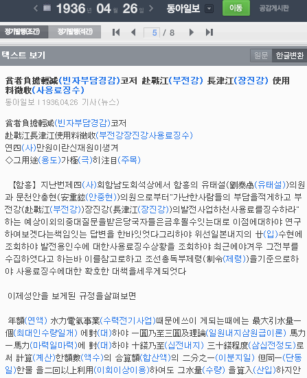함경남도 도회에서의 활동으로는 흥남 조선질소비료주식회사(기사에서는 조질회사로 약칭. 일본질소비료주식회사의 자회사)가 부전강, 장진강에서 수력 발전으로 생산되는 전기를 염가로 쓰고 있는 것을 통박하며, 이 조질회사로부터 전기료를 더 받아 그 재원을 활용하여 초등학교 입학률이 2할 5푼도 안 되는 비참한 함경남도의 교육을 위한 재정에 활용해야 할 것이 아니냐며 열변을 토한 일이 있다. 실제로 이 열변은 받아들여져서 당국은 일본 내지의 수력 발전된 전기 사용료를 조사하여 조질회사에게 요금을 증수하여 연간 4만원의 함경남도 재원을 확보하게 되었다는 후속 기사가 있다.