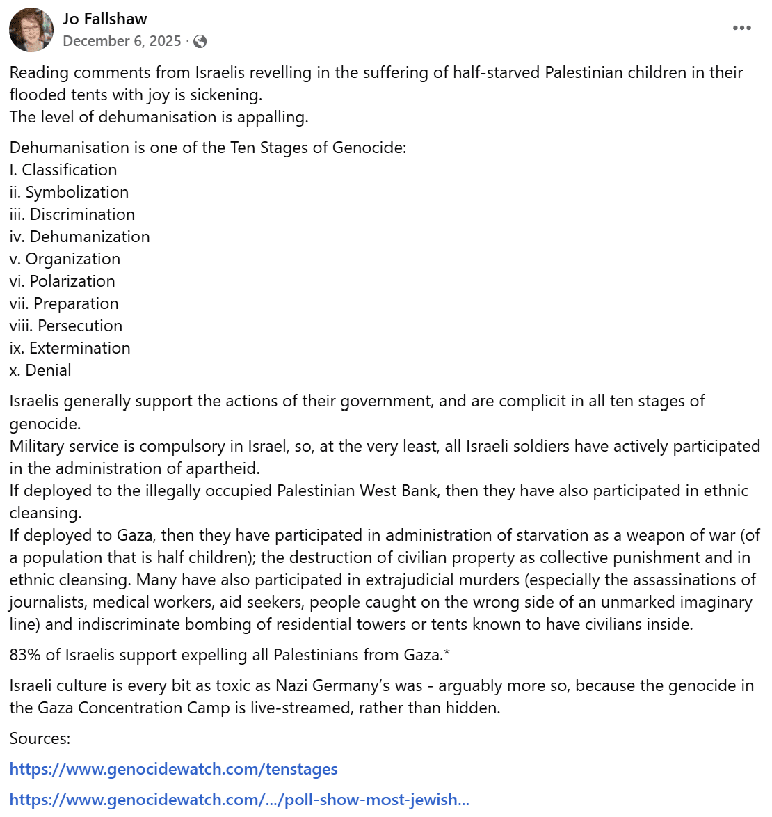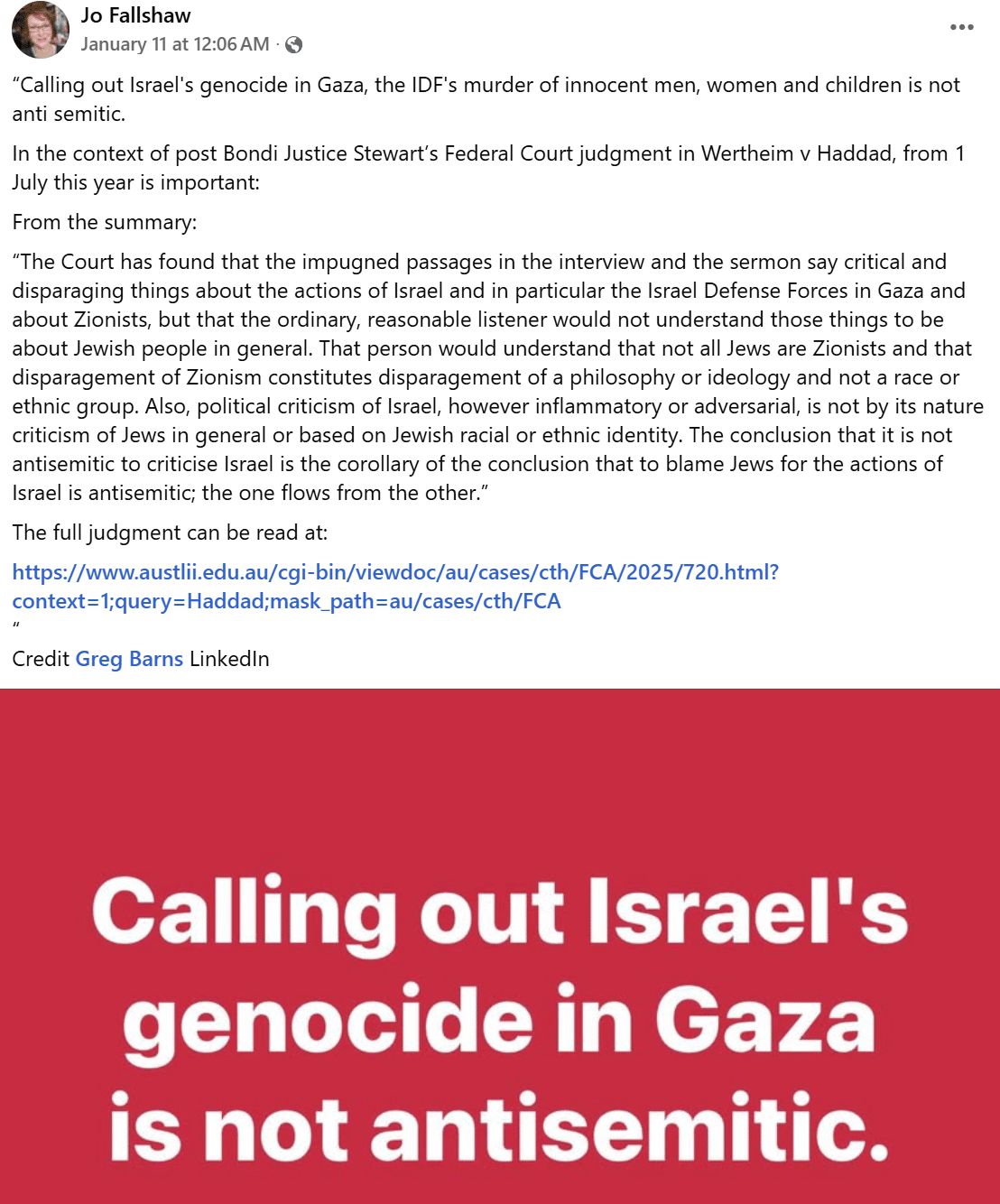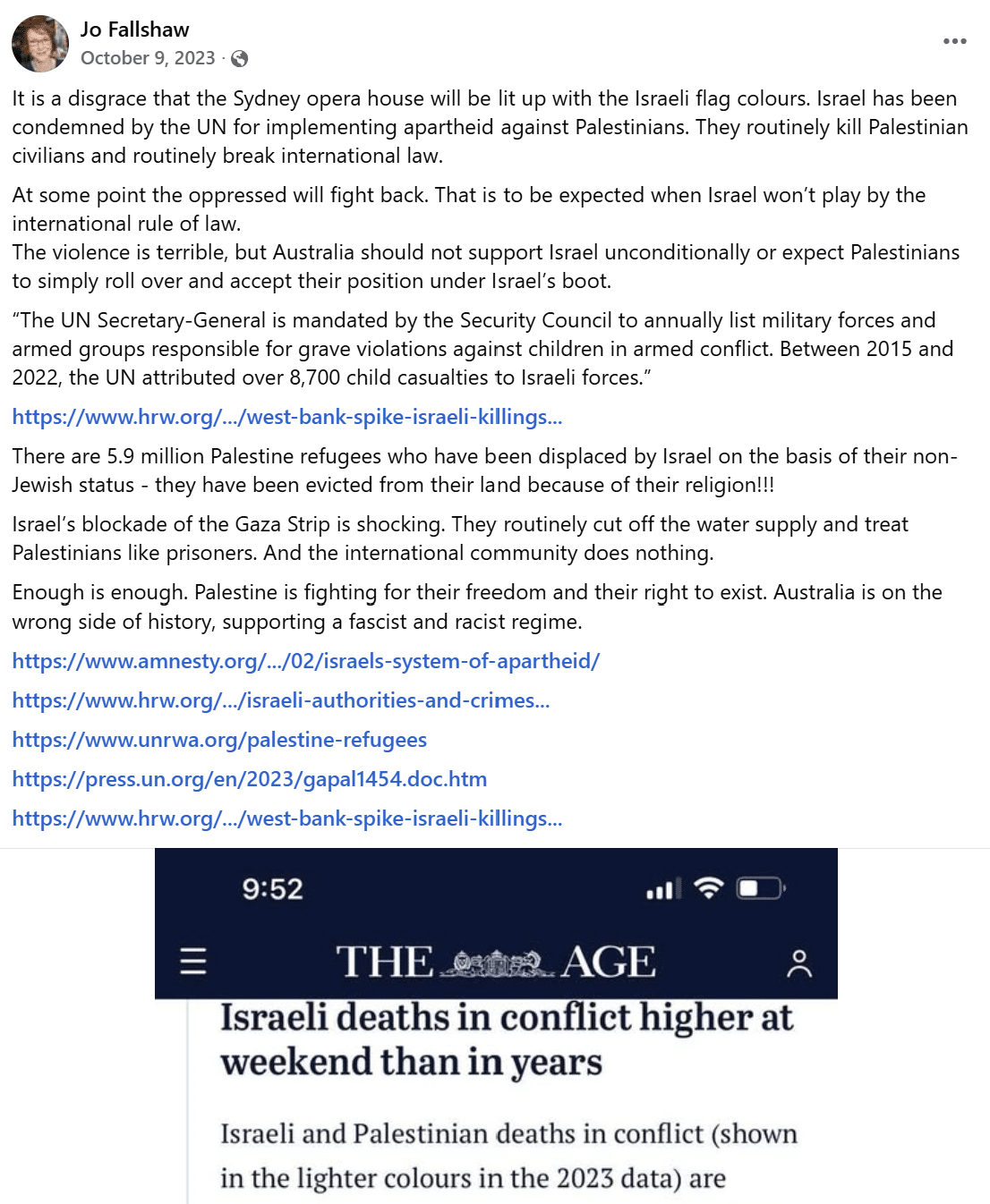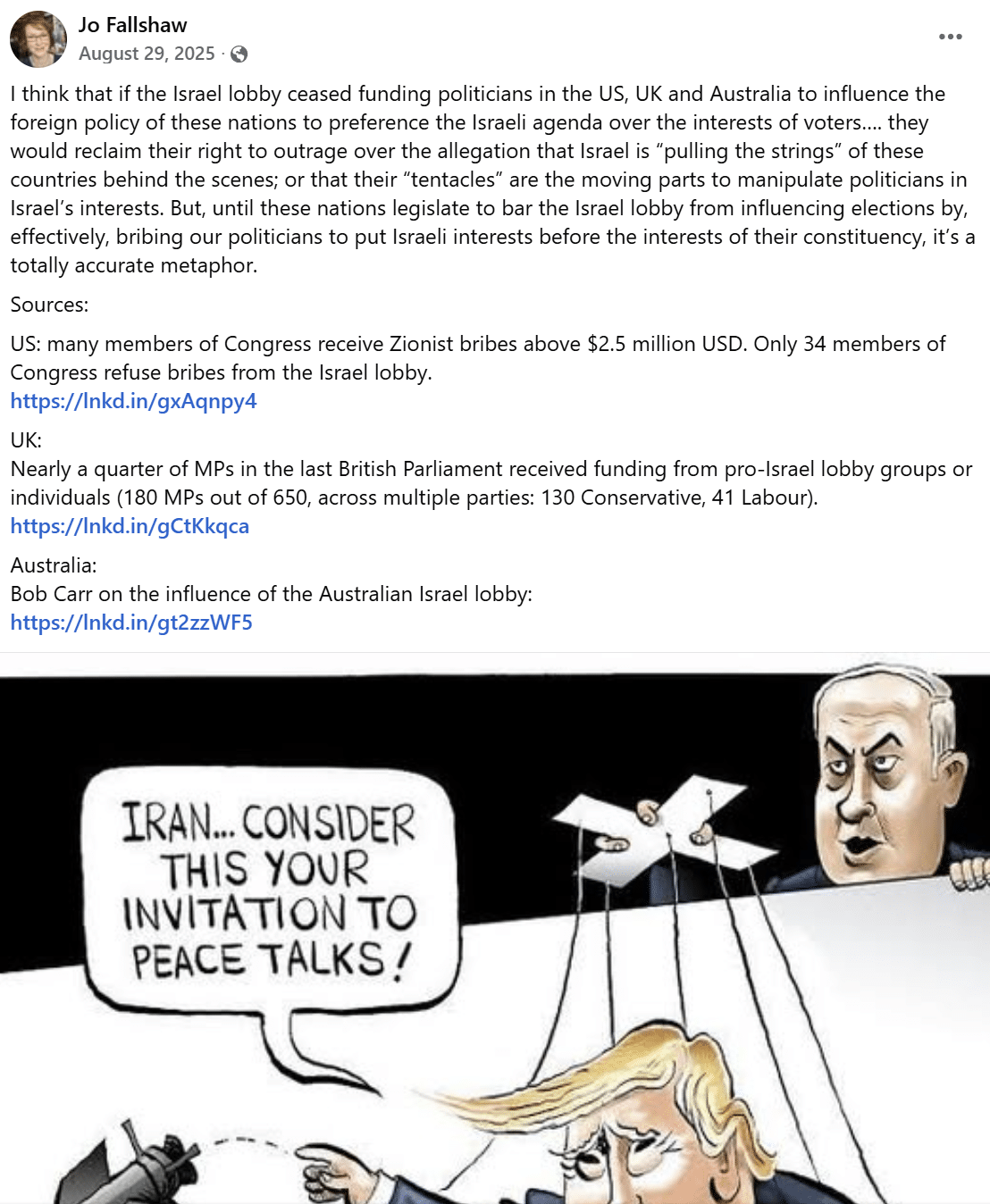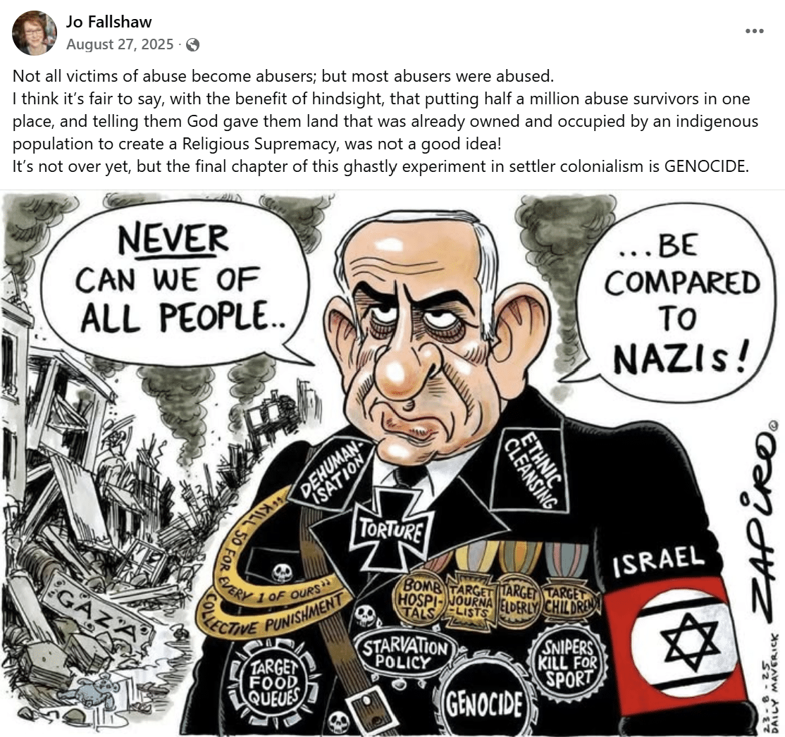 Jo Fallshaw of Fallshaw Group: “Anti-Zionist, Not Antisemite” of the Day