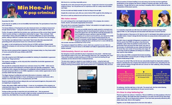 반기 든 자사 이사 민희진 악마화 페이지도 만들어